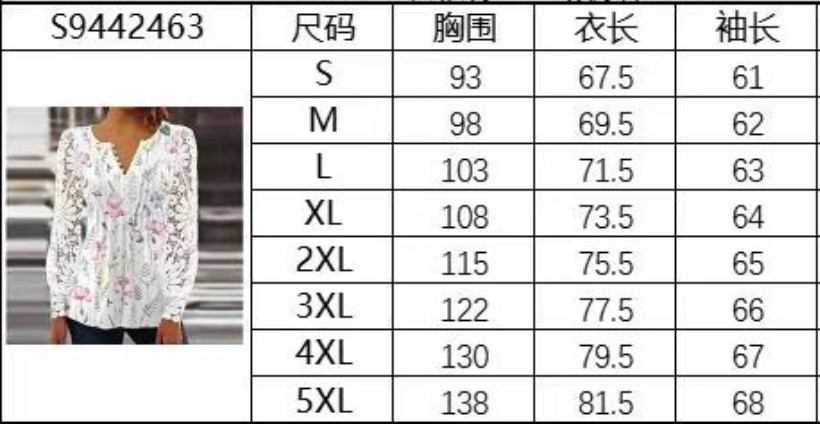 2023Cross-Border Amazon Spring and Autumn Women's Clothing New European and American Fashion Lace PrintingVCollar Long SleevesTT-shirt Top Women's