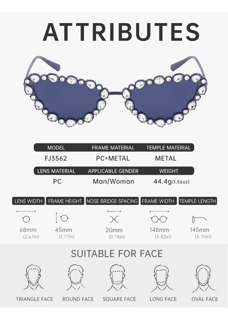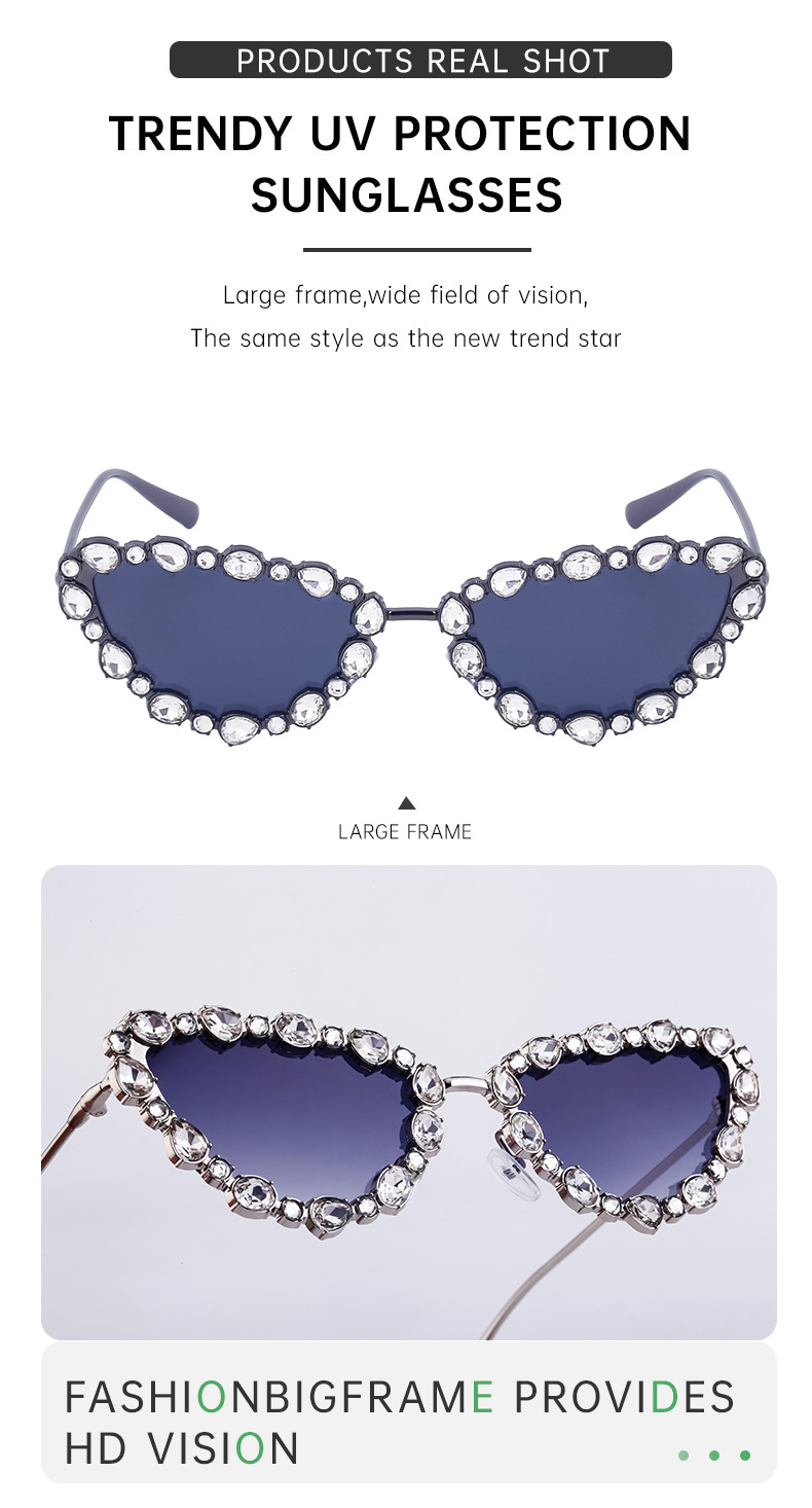 2023European and American Diamond Sunglasses Women's Personalized Cat Eye Sunglasses Cross-BordersunglassesWholesale