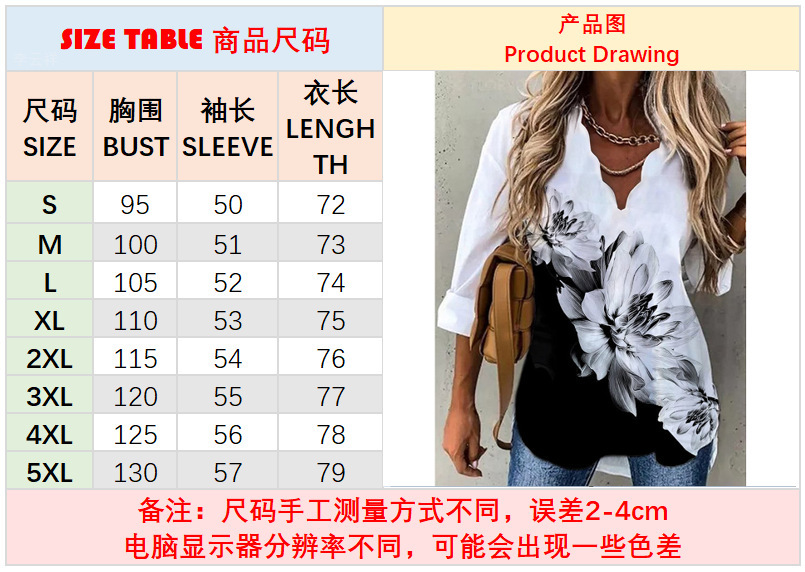 2023Spring and Summer New AmazonTT Shirt European and American Women's Clothing Long Sleeve Ink Printing Fluted CollarTT-shirt Top Women's