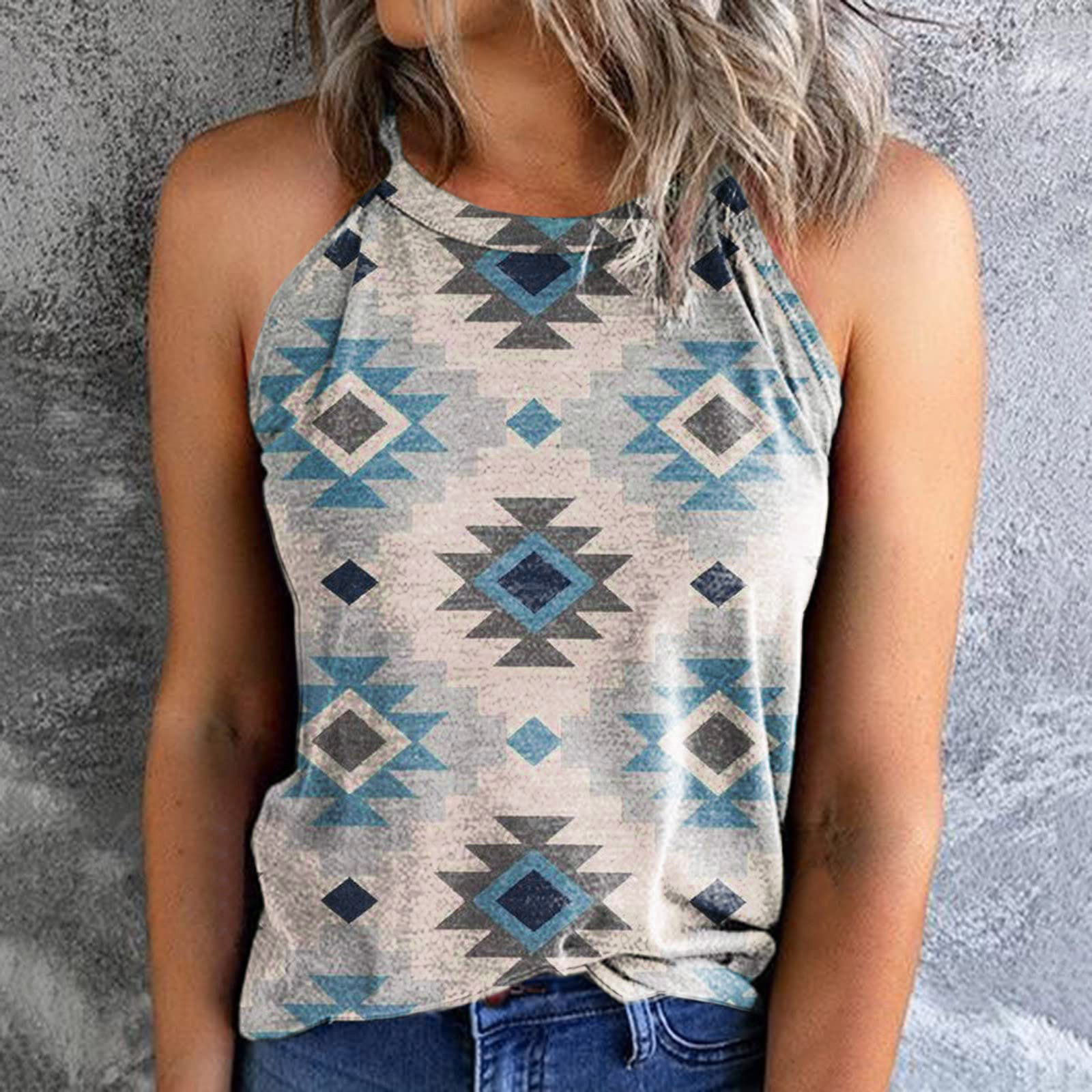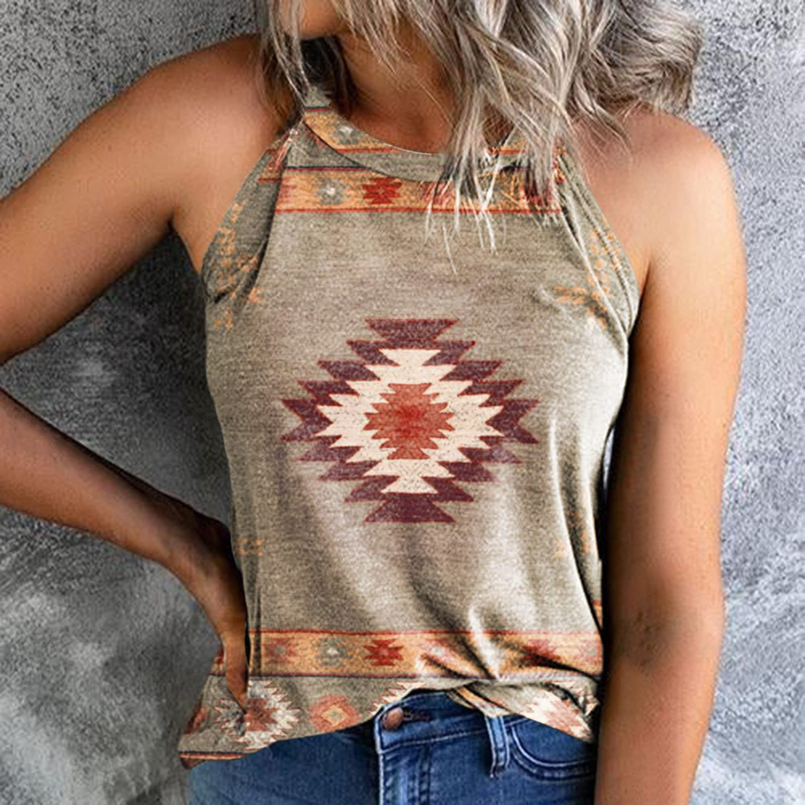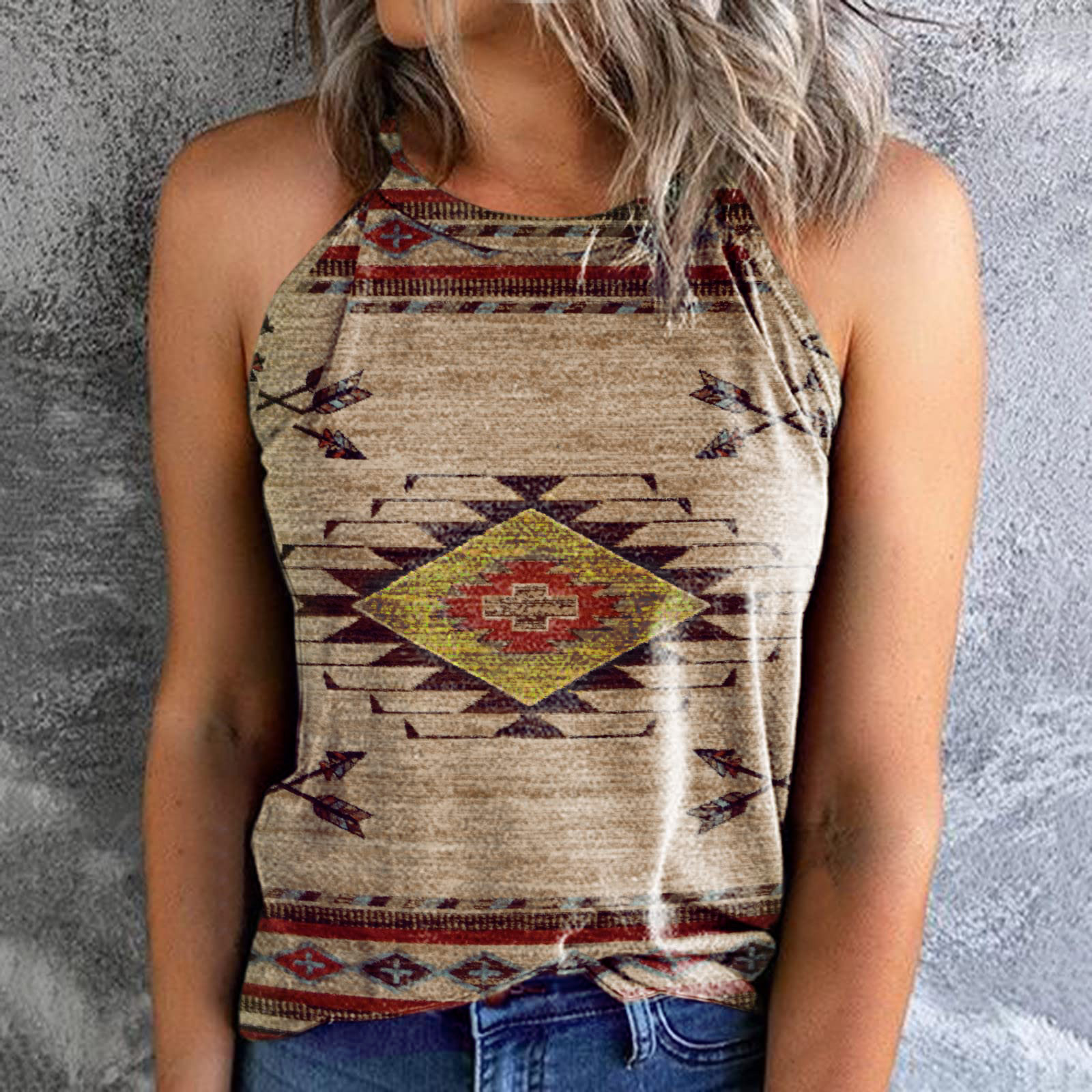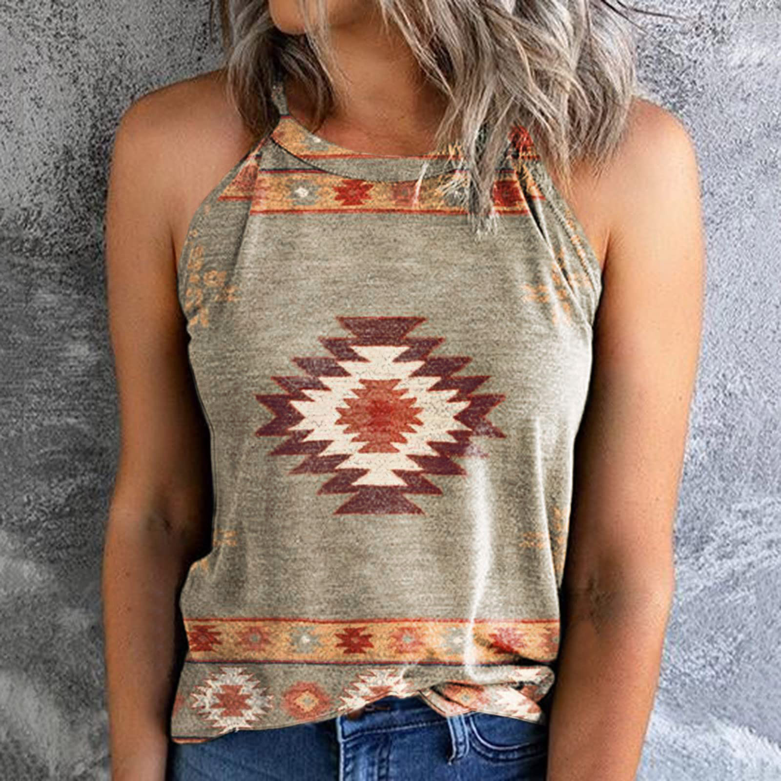 2023Summer AmazonebayCross-Border European and American New Women's Clothes Loose Retro Printed Halter Sleeveless Vest