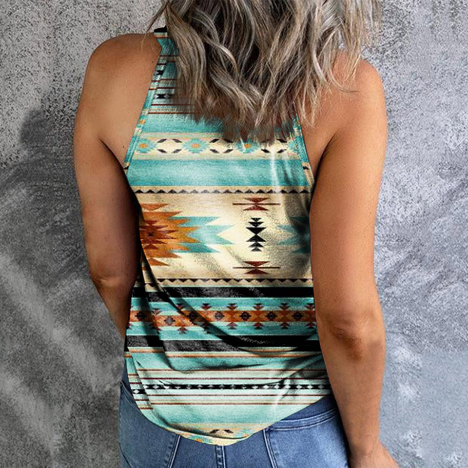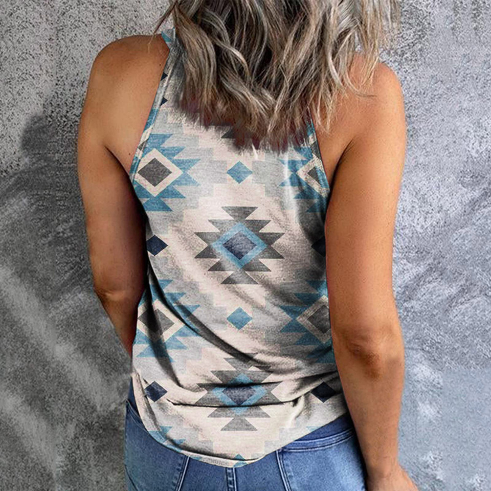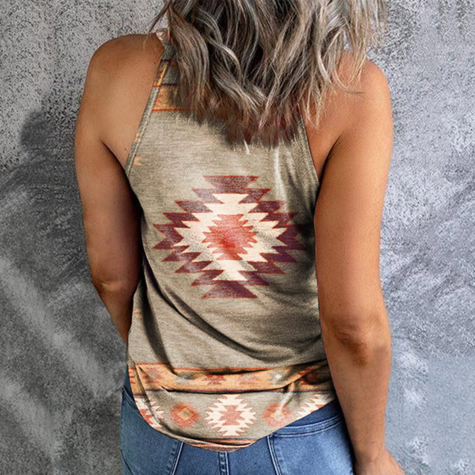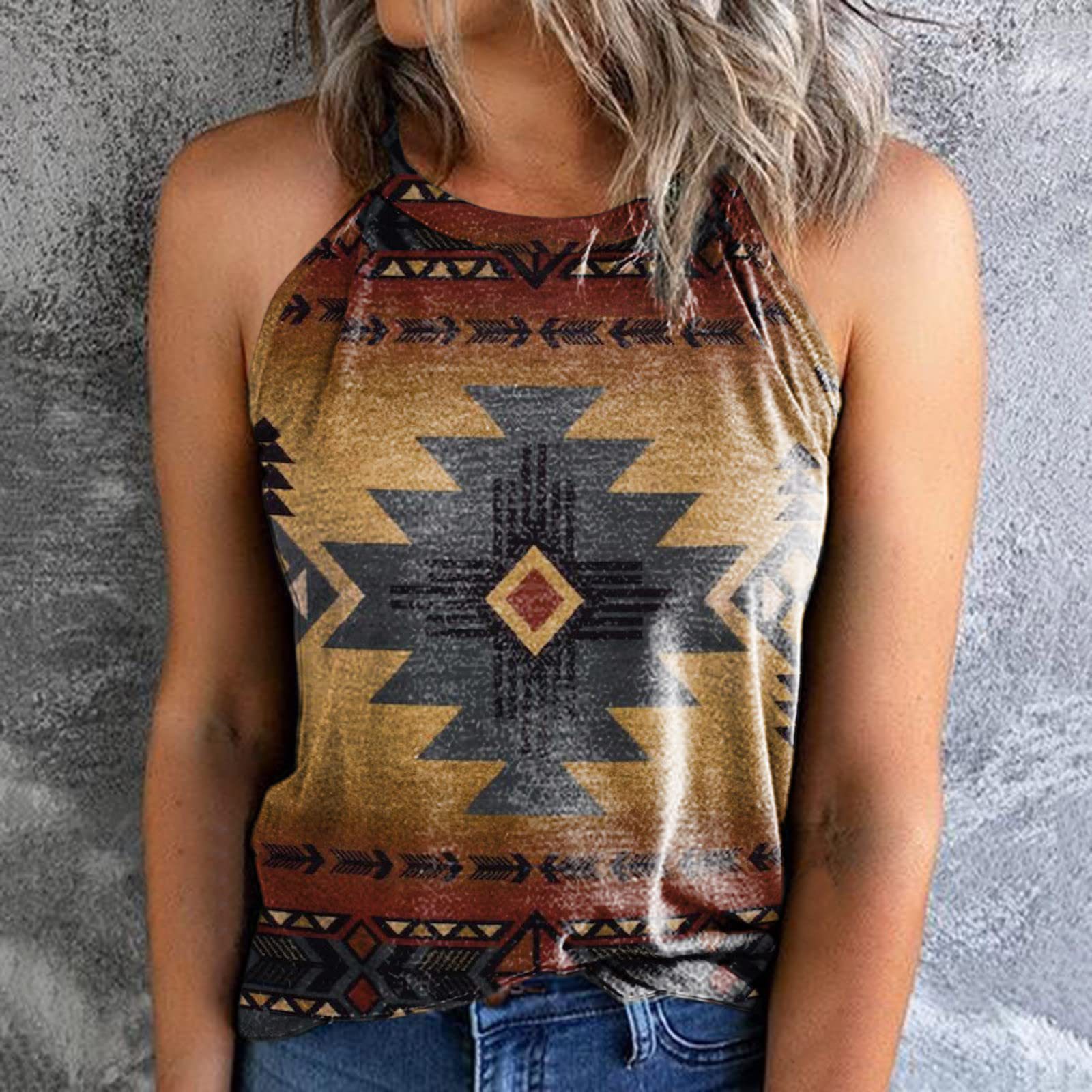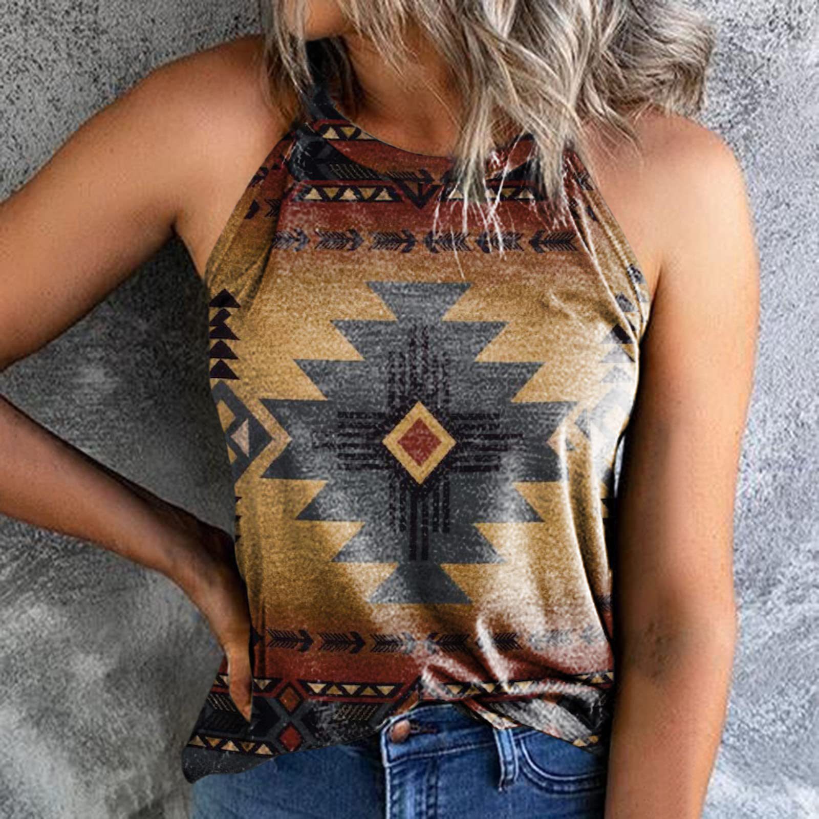 2023Summer AmazonebayCross-Border European and American New Women's Clothes Loose Retro Printed Halter Sleeveless Vest