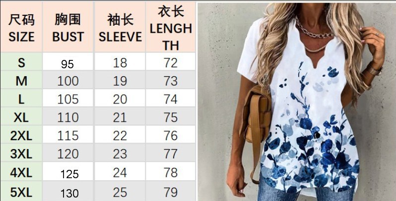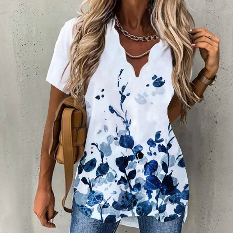 2023Summer New AmazonTT Shirt European and American Women's Clothing Short Sleeve Ink Printing Fluted CollarTT-shirt Top Women's