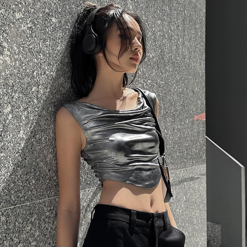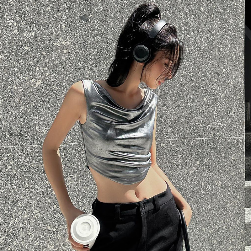 AliExpressinsStyle European and American New Hot Girl Women's Clothing Sexy Navel Reflective Slim Fit All-Match Wind EssentialTT-shirt Women's