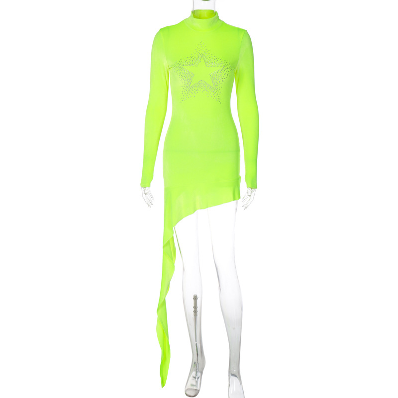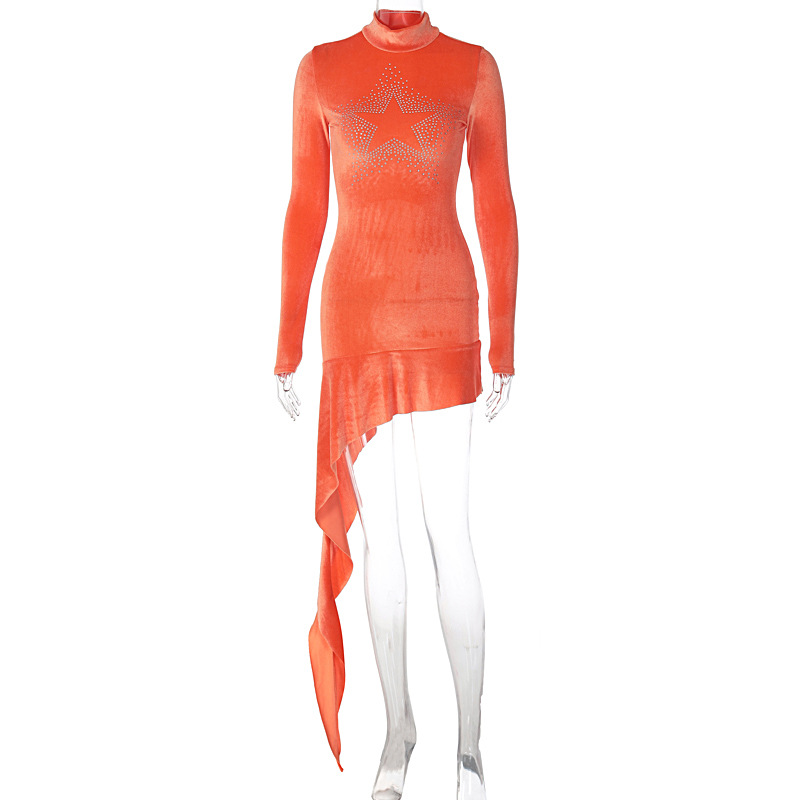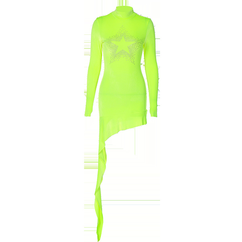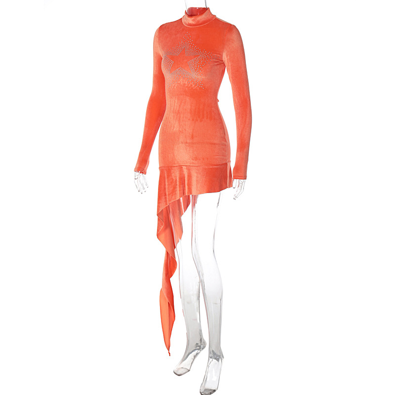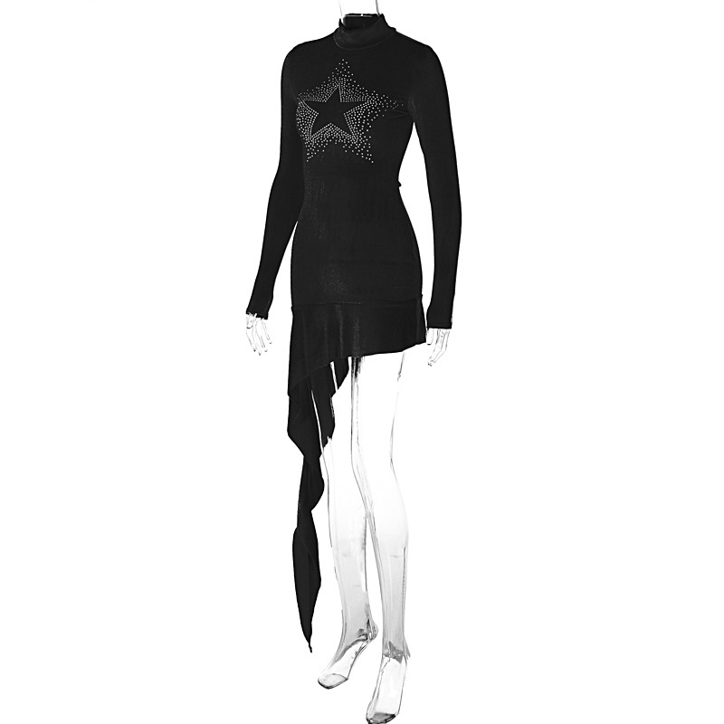 Best Seller in Europe and America Women's Clothing Solid Color Fashion Chest Hot Rhinestone Long Sleeve Short Dress Ruffled Ribbon Personalized All-Match Dress