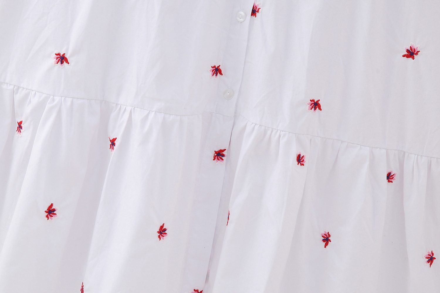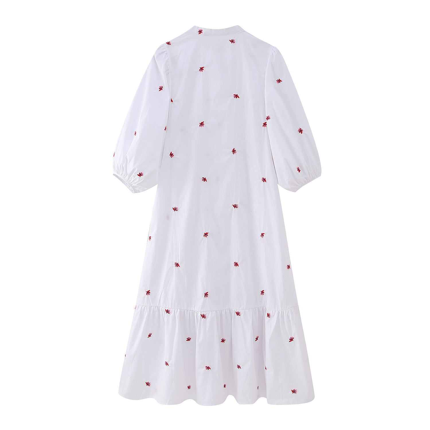 Cross-Border Foreign Trade 2023 Women's Flower Embroidered Midi Dress Travel Vacation Ruffled Puff Sleeve Dress