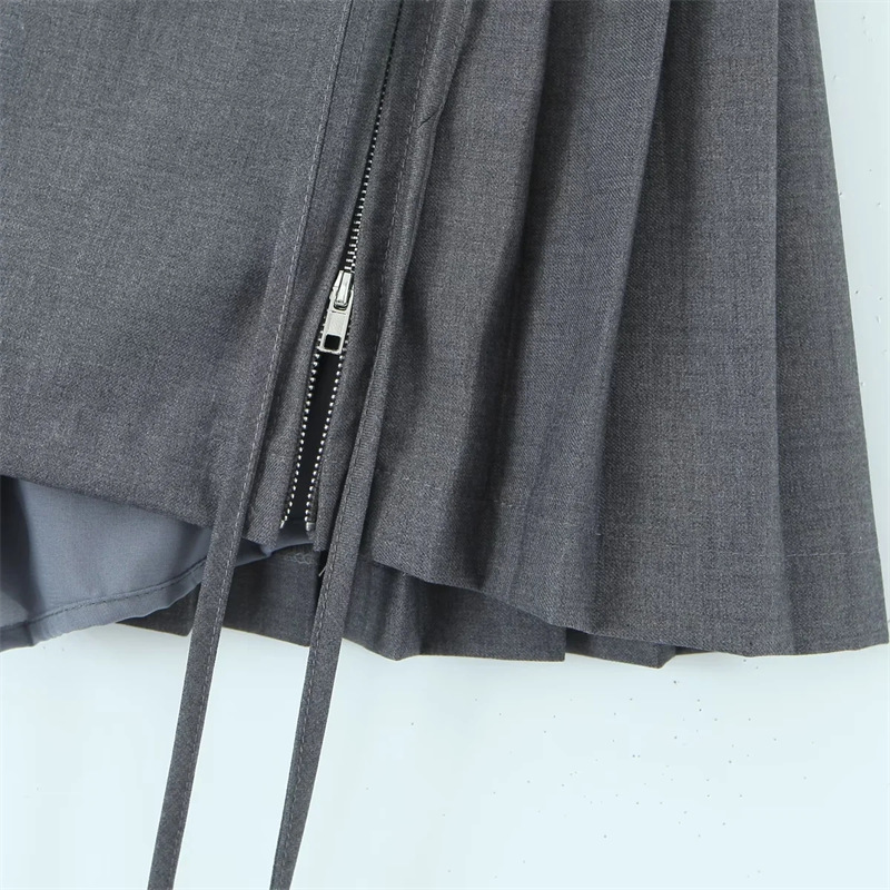 European and American Design High Waist Double Drawstring Skirt Female Hot Girl Anti-Exposure All-Match PleatedAWord Mini Skirt