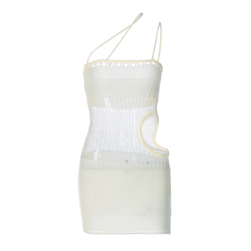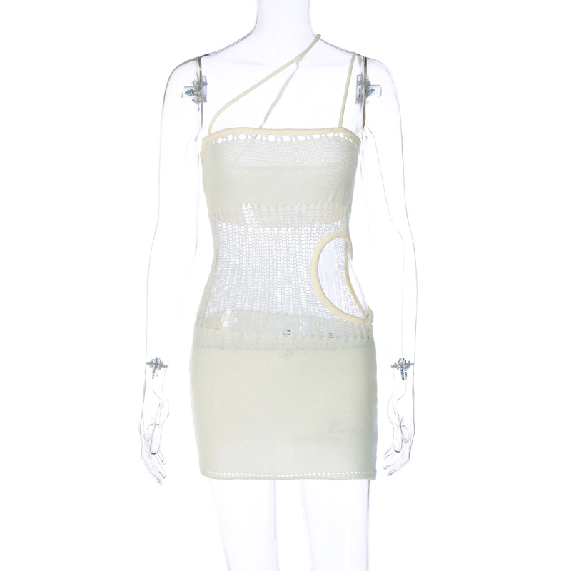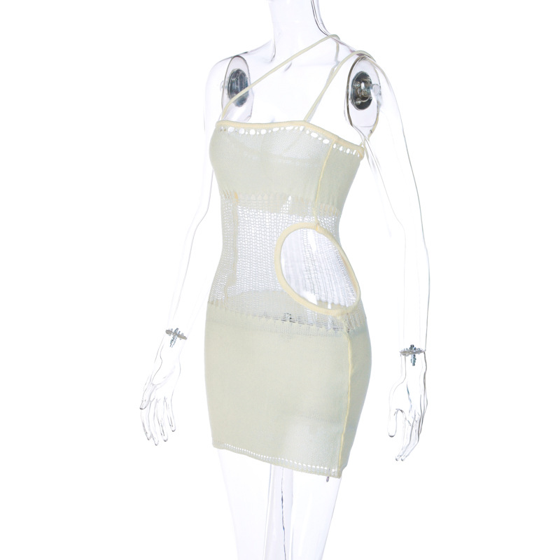 European and American New Arrival Hot Sale Women's Fashion Woolen Stitching Tied Hollow Slim Sexy Dress Female One Piece Dropshipping