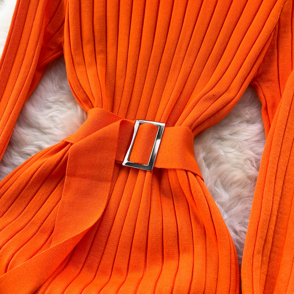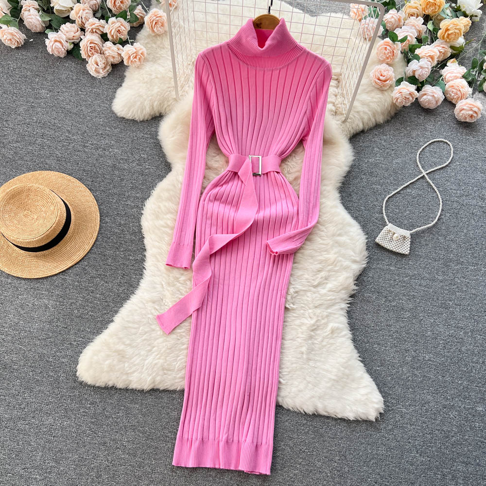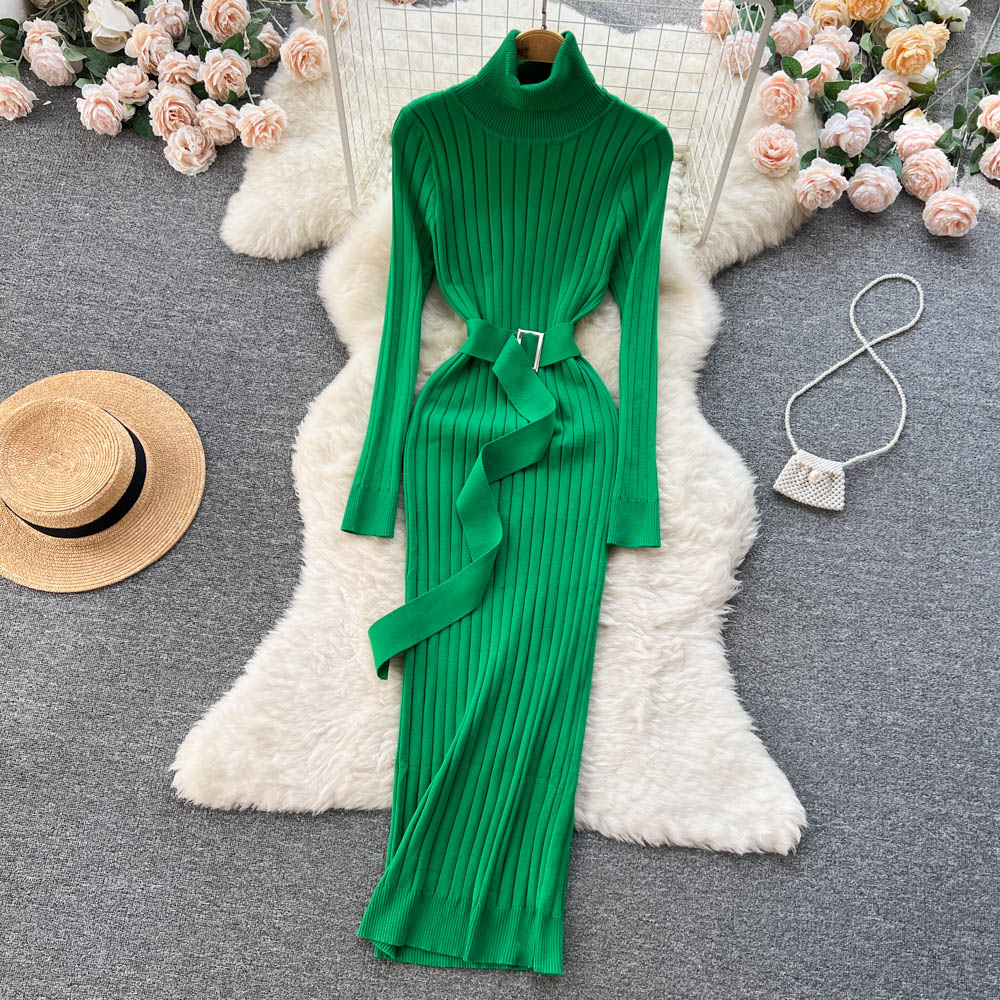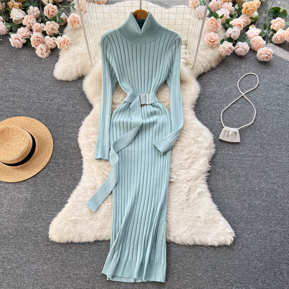 European and American Style Half Turtleneck Knitted Dress Fall Women's Clothing French Retro Waist-Controlled Slim Fit Sheath Dress