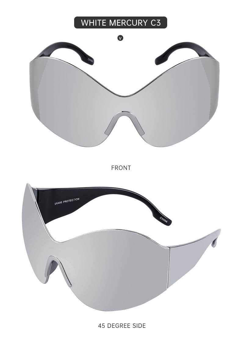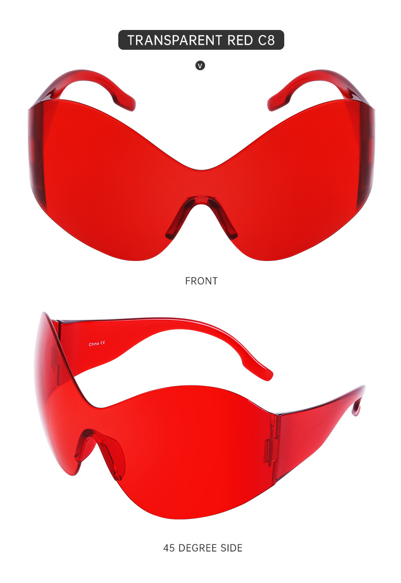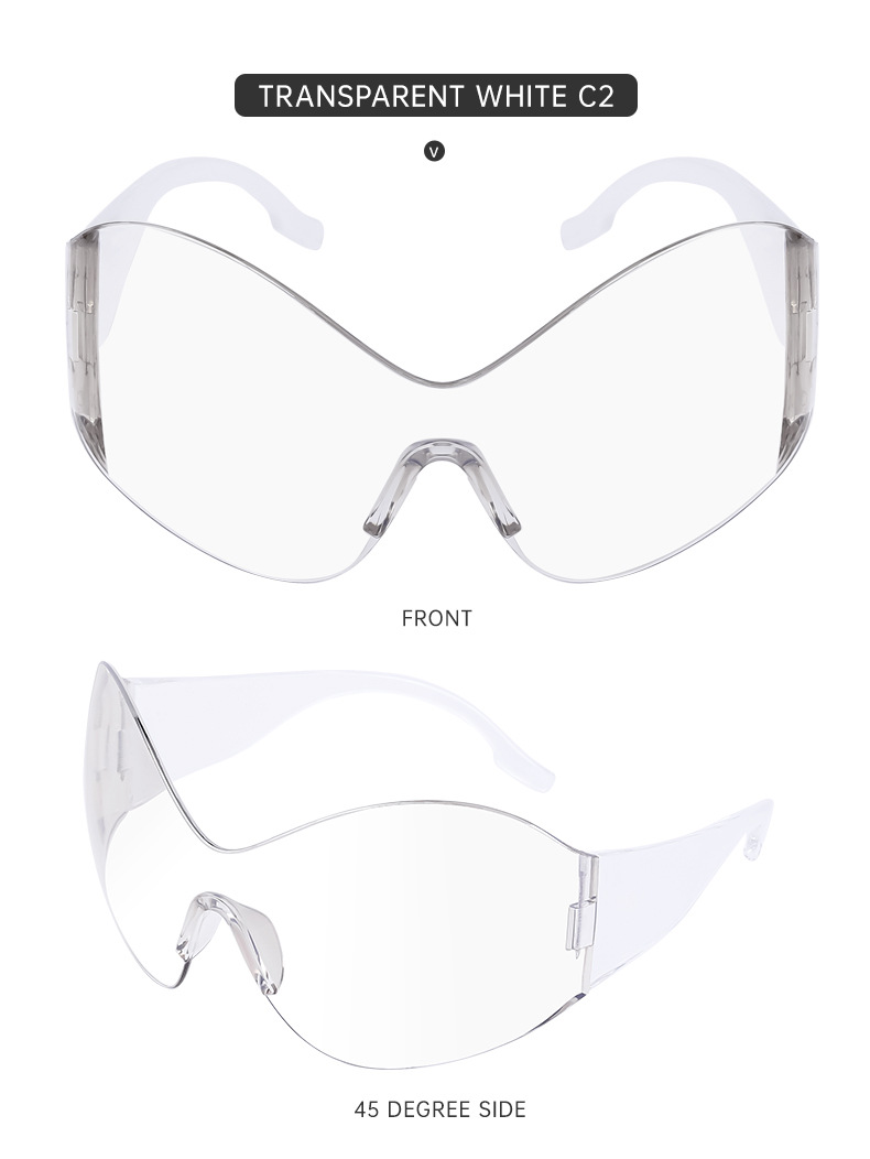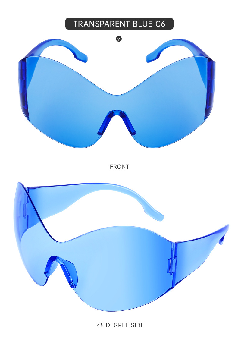 European And American-StyleY2KMillennium Windproof Large Rim Sunglasses Women's Fashion Frameless Integrated Cats' Eye Sunglasses Men's Cross-Border Glasses Wholesale
