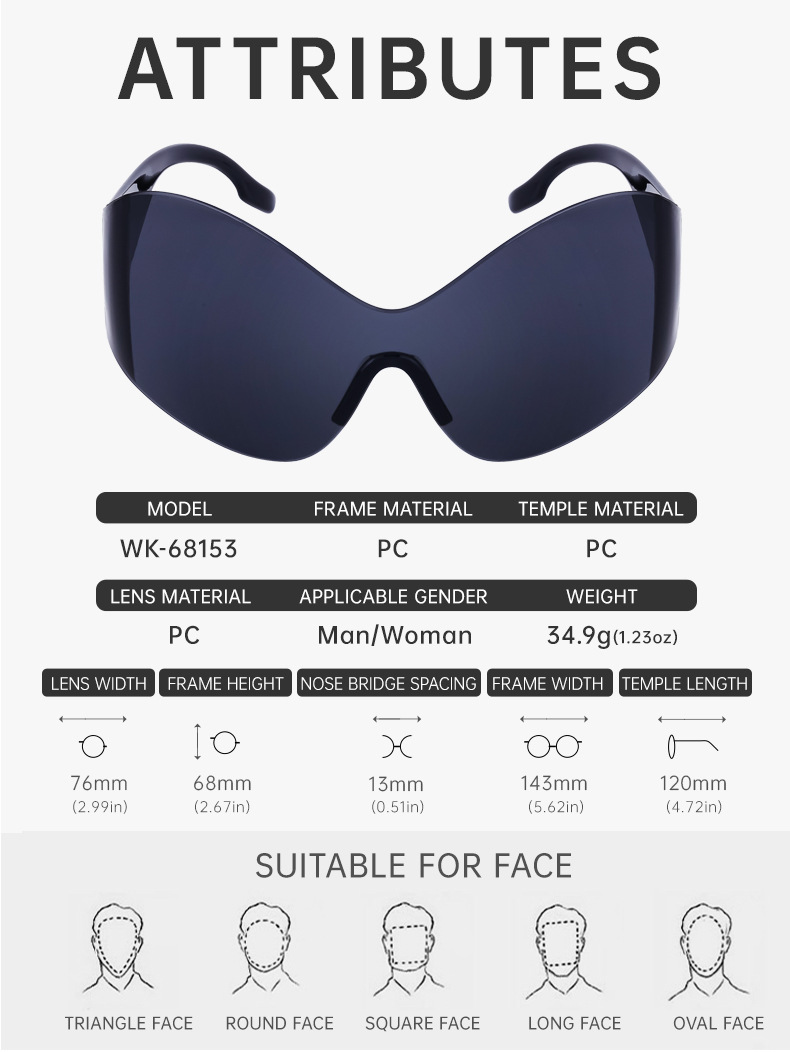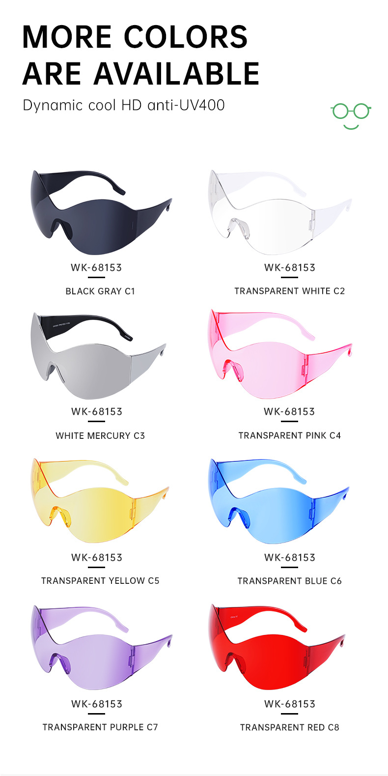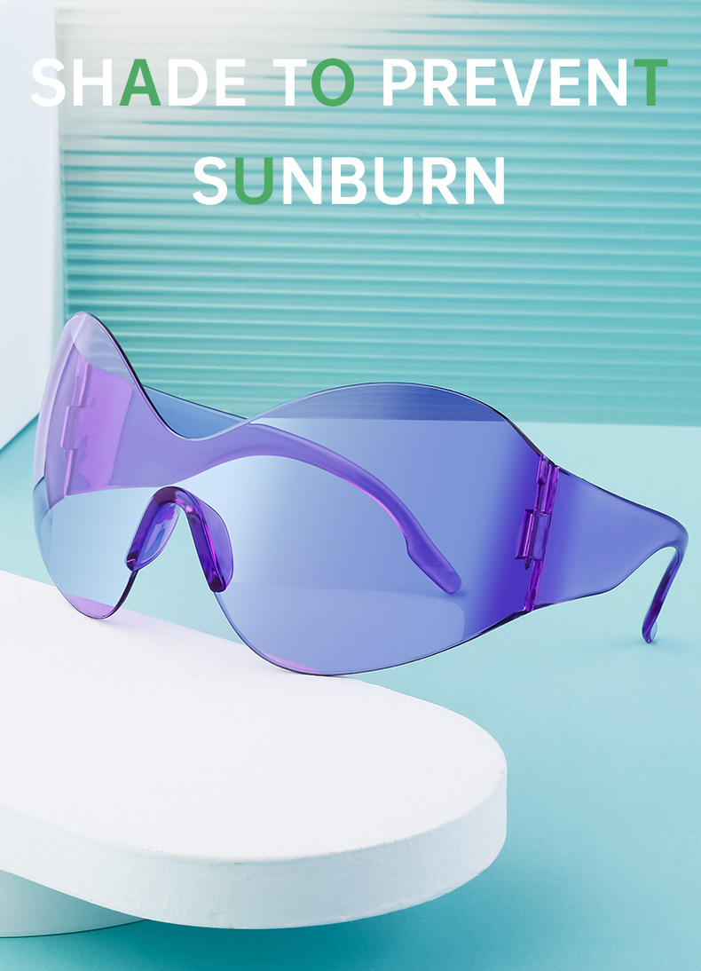 European And American-StyleY2KMillennium Windproof Large Rim Sunglasses Women's Fashion Frameless Integrated Cats' Eye Sunglasses Men's Cross-Border Glasses Wholesale