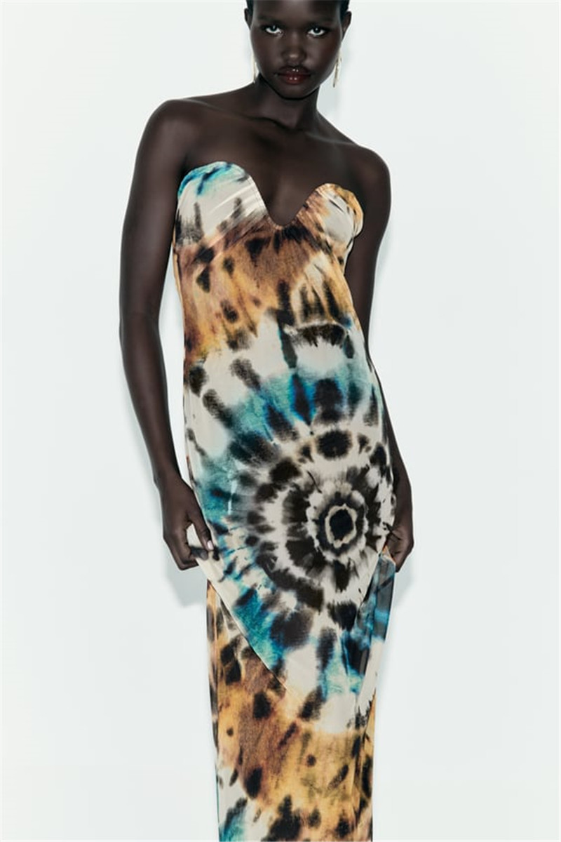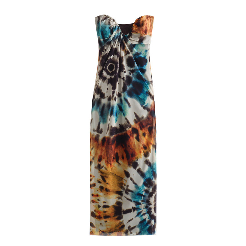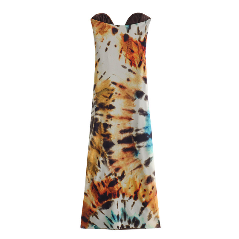 Foreign Trade2023Autumn New European and American Fashion Tube Top Pleated Midi Dress for Women5039396