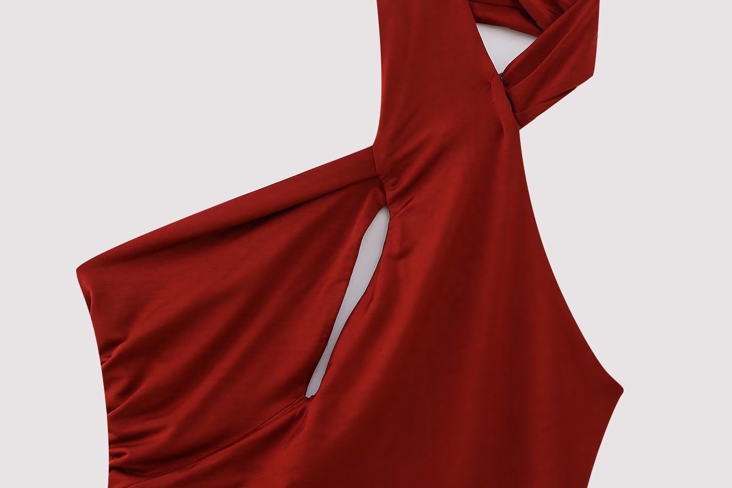Foreign Trade2023European and American Autumn New Fashion Elegant Hanging Collar Irregular Pleated Dress for Women8093605