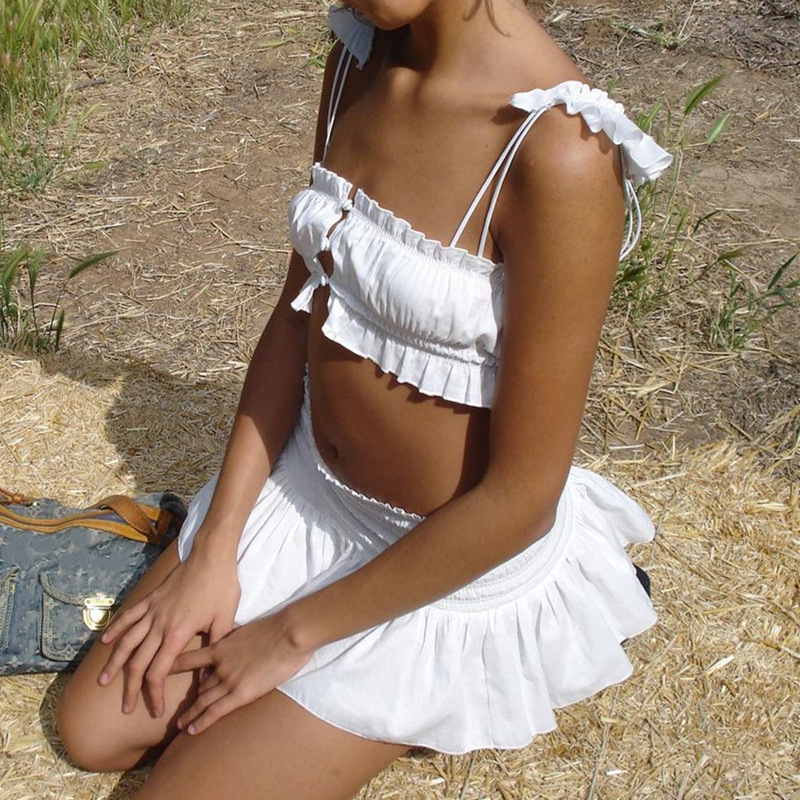 insEurope and America2023Summer New Women's ClothingKylieSame Style Sexy Two-Piece Suit Simple and Short VestALine skirt