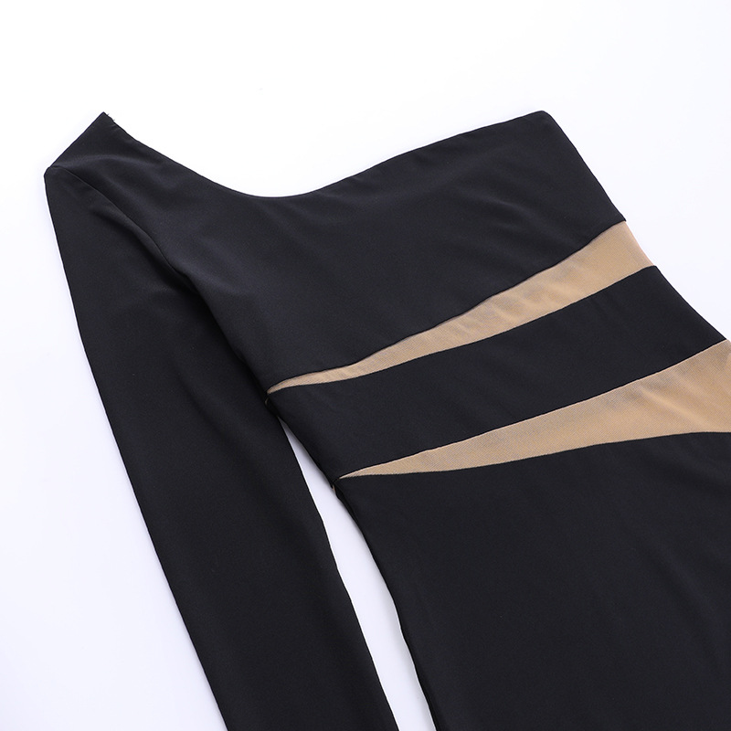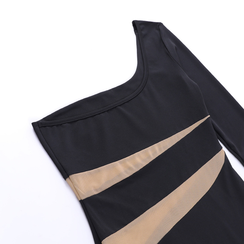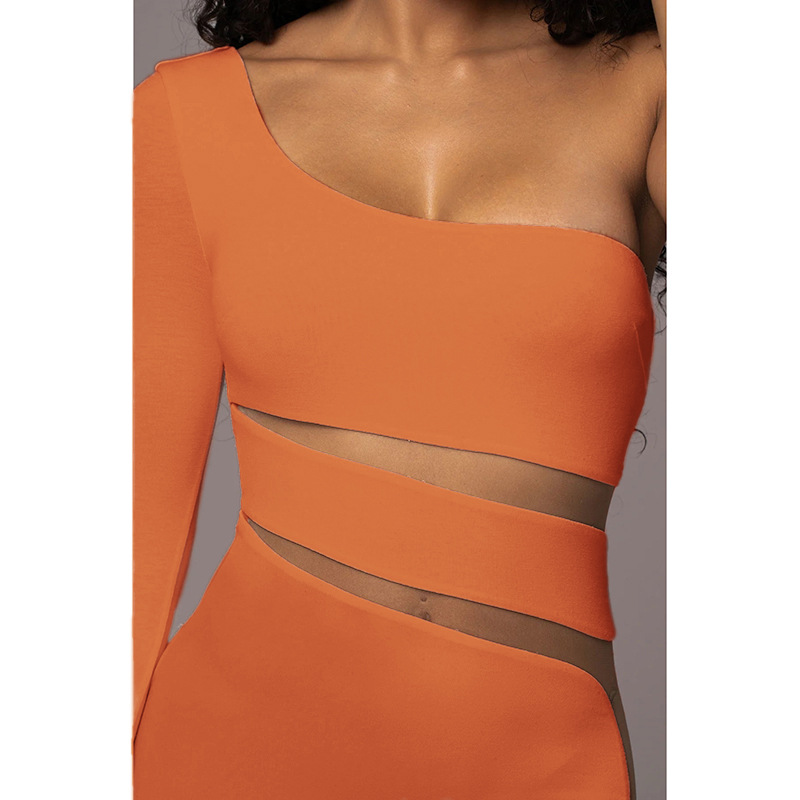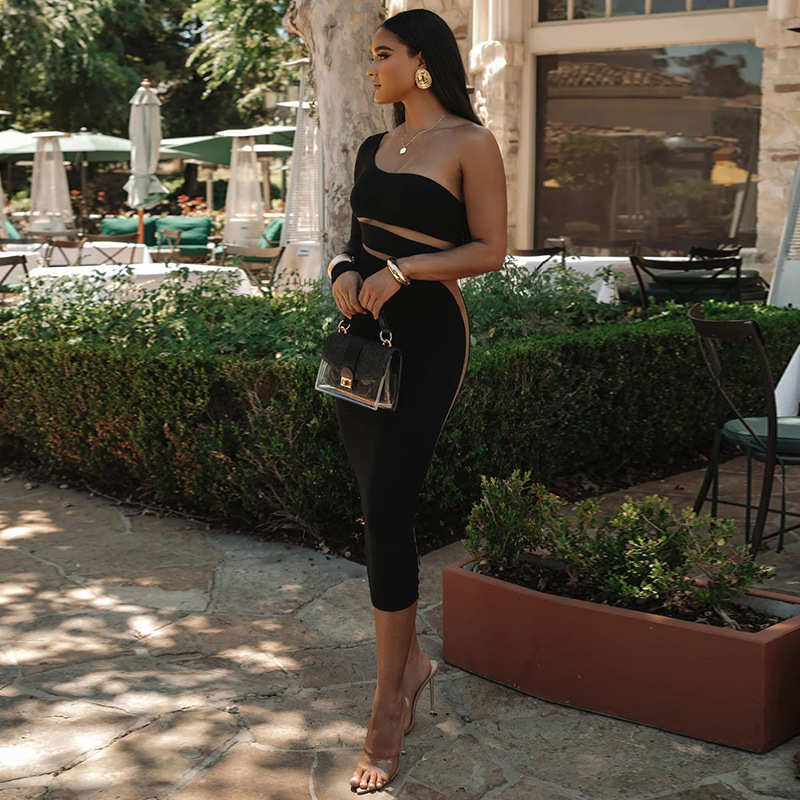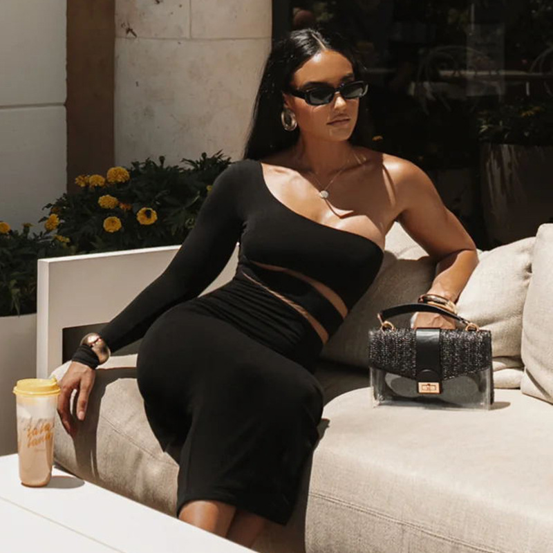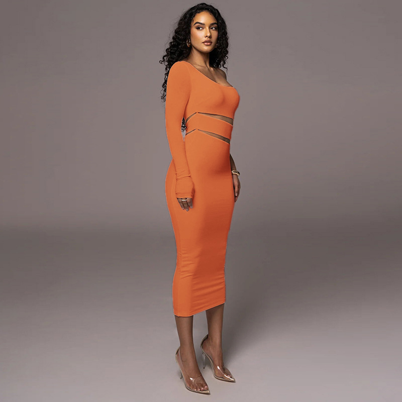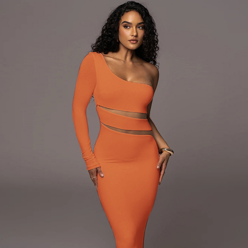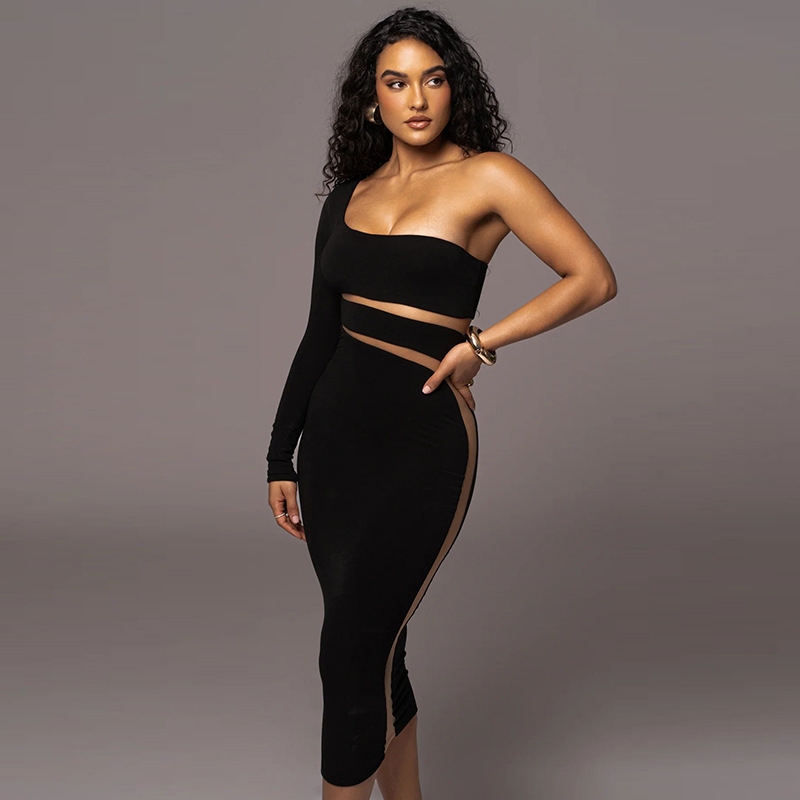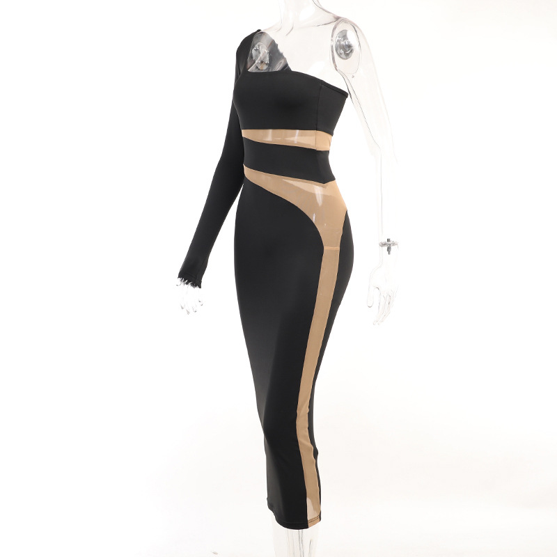 YL23488European and American Personalized Split One-Shoulder Dress 2023Autumn New Simple Sexy Cutout Hip Skirt